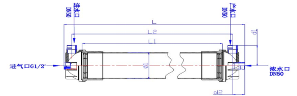 EM-UF-8060-PVDF,EM-UF-8080-PVDF,EM-UF-1060-PVDF膜组件结构示意图