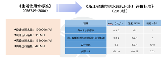 产水浊度小于0.1NTU,粒径>5μm的颗粒物总数保持在10个以下,优于《浙江省城市供水现代化水厂评价标准》要求。